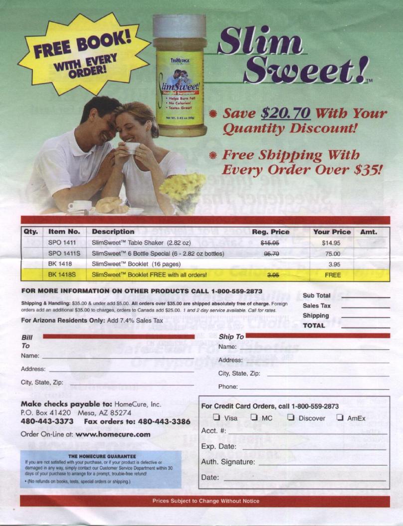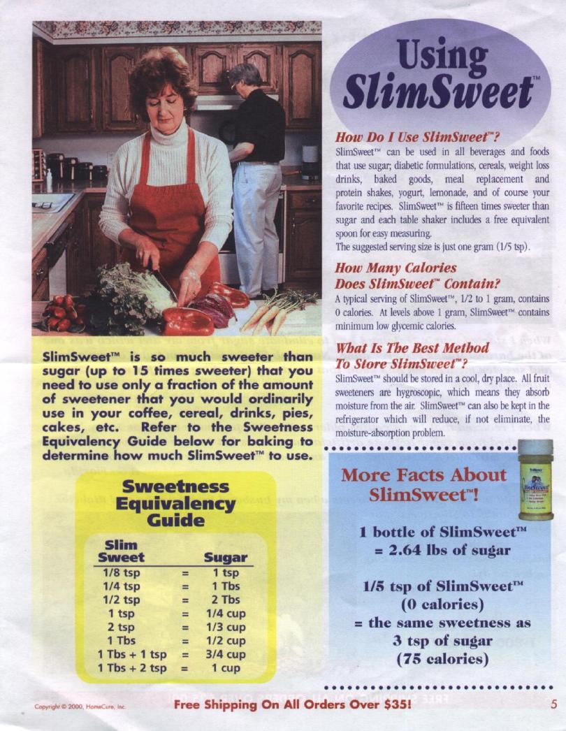 Also, SlimSweet Sugar Substitute, and Joint Advantage.
