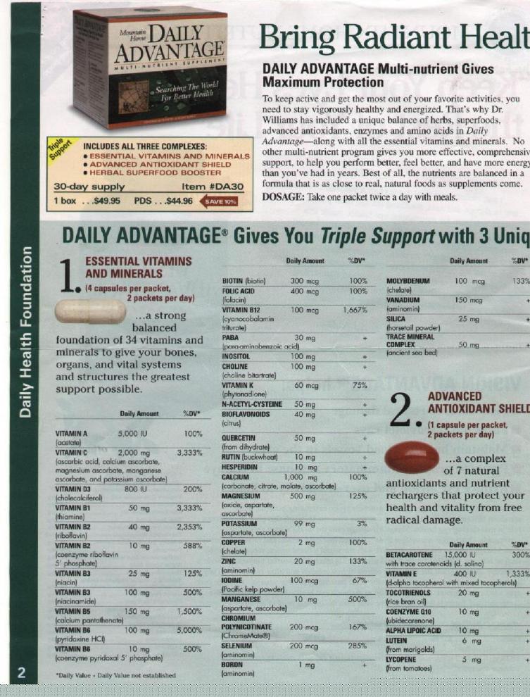 Also, MGN-3, Daily Advantage Vitamins, and Vision Advantage.