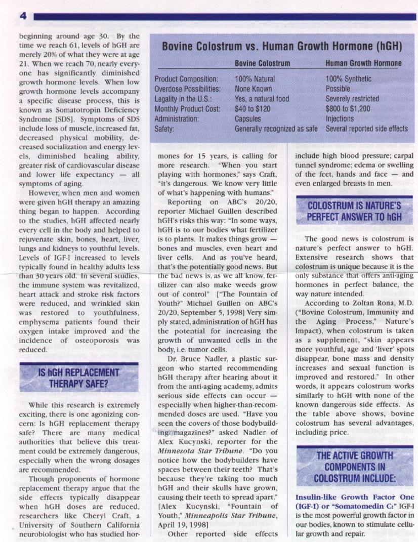 Colostrum is nature's perfect answer to hGH and it is safe.